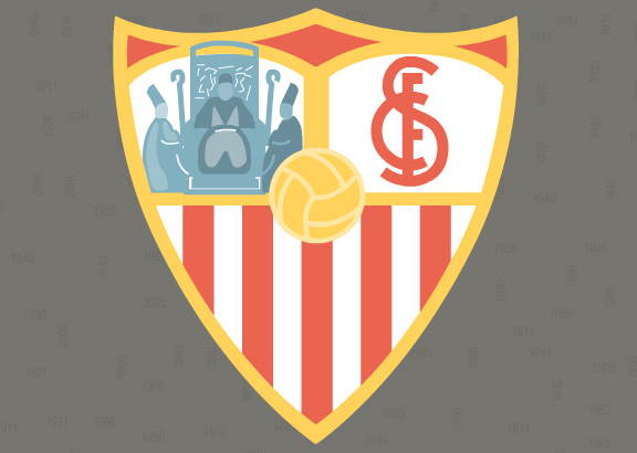 El escudo actual. 1.982 Se mantiene el balón en el centro y las 11 barras, 5 rojas, 6 blancas. (ver escudo)